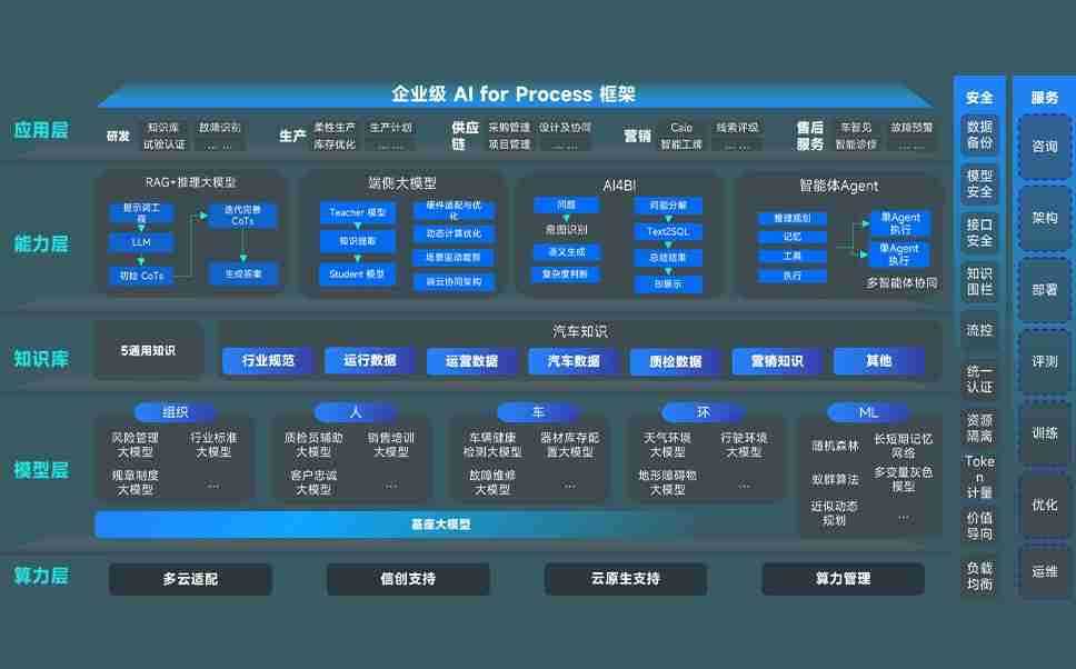 端到端的一站式AI工作空间深度融合了从企业战略规划到日常经营的全流程业务板块,,定向解决车企内部领域多、、、、部门多、、链条长、、场景碎片化等难题,,,支持车企快速构建以AI为核心的生产力写作体系,,,,实现任务执行与AI能力的无缝集成与交互